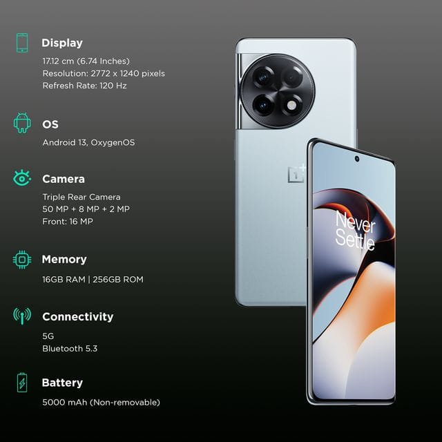 In the Box OnePlus 11R 5G, USB-C to USB-C Cable, 100W Charger, Ejection Pin, Quick Start Guide